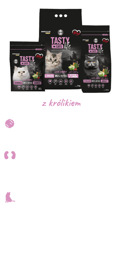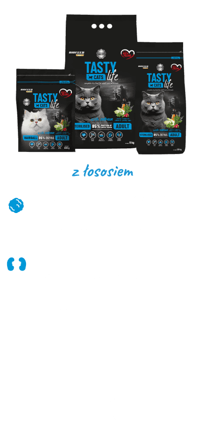 Tasty Life to marka opracowana przez specjalistów, którzy doskonale wiedzą, że nasi czworonożni psyjaciele zasługują na to, co najlepsze. Właśnie z tą myślą powstały pełnowartościowe karmy, które dzięki bogactwu składników odżywczych pozwalają naszym ulubieńcom cieszyć się smakiem życia. Produkty Tasty Life skierowane są do opiekunów, którzy chcą zapewnić pupilowi posiłek dostarczający wszystkiego, co potrzebne do prawidłowego rozwoju i beztroskiej zabawy.